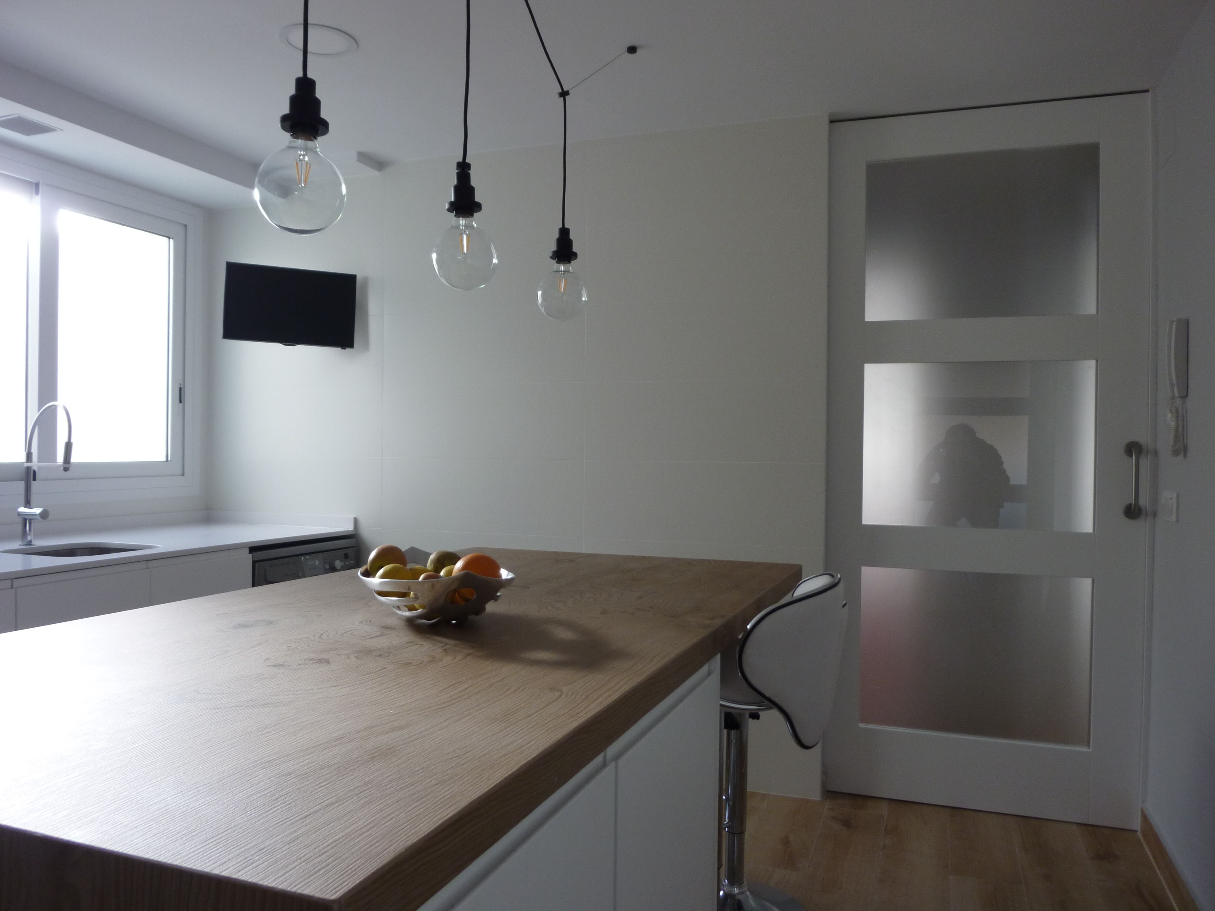 Reforma de ático en Catarroja (Valencia). El problema con el que se encontraban los propietarios de esta vivienda es que la mala distribución de los espacios provocaba la falta de espacio en la misma y la incomodidad y nula comunicación entre la cocina que era muy pequeña y el salón/comedor que era donde tenían que desayunar/comer/cenar debido a que la cocina era minúscula, provocando incomodidad y poca funcionalidad de los espacios, los dormitorios simples, eran pequeños y mal distribuidos, este fue el mayor quebradero de cabeza con el cual nos encontramos, cómo hacer más grandes las habitaciones con el reducido espacio con el que nos encontramos, debido a que la habitación más pequeña tenía un retranqueo de la fachada del patio interior que provocaba una pérdida importante de espacio en ella.